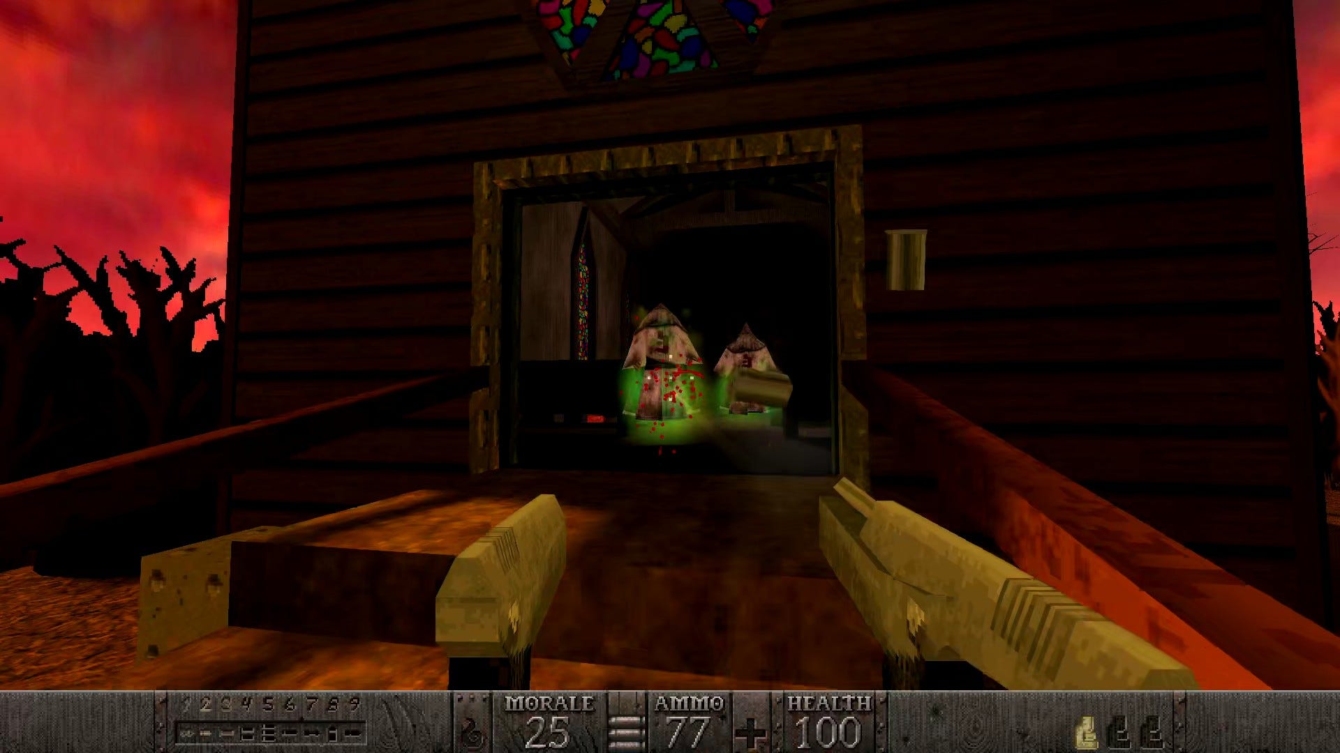 Dusk’s action and its familiar sights are gradually encroached upon by horror moments and mind-bending landscapes as you go further and further. The continuity the game has established so strongly - even including a back door near the start of every level which displays “No turning back now” when interacted with - enhances the disjointed feeling as your quest to uncover the cult’s machinations becomes more and more incomprehensible. It all comes to a head spectacularly in episode three, easily the highlight of the game which I don’t want to spoil much. I’ve already said too much about episode two, honestly, but I didn’t think I could paint a picture of how precise and effective this game’s level design and pacing are without it. It feels like you’re being toyed with in the best way possible. Although I don’t have the stomach for horror - I even chickened out of this game for a little while from one level in episode three - I think Dusk nails its action and its horror in equal parts. After all, the shooting was so good that I toughed out the scares, and it makes the game so much more unique on the whole.